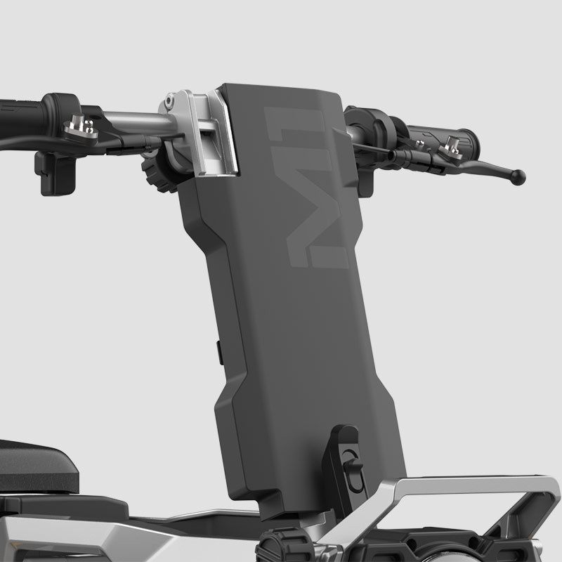 Kompakt, leicht & faltbar: Lenker und Sitz lassen sich umklappen, sodass der M1 zusammengefaltet nur ca. 60 cm hoch und 40 cm breit ist und etwa 43 kg wiegt. Damit passt er problemlos in den Kofferraum oder Camper und ist ideal für Pendler oder Reisende.